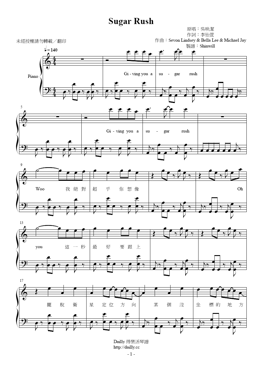 琴譜名稱:吳映潔-Sugar Rush 鋼琴譜
