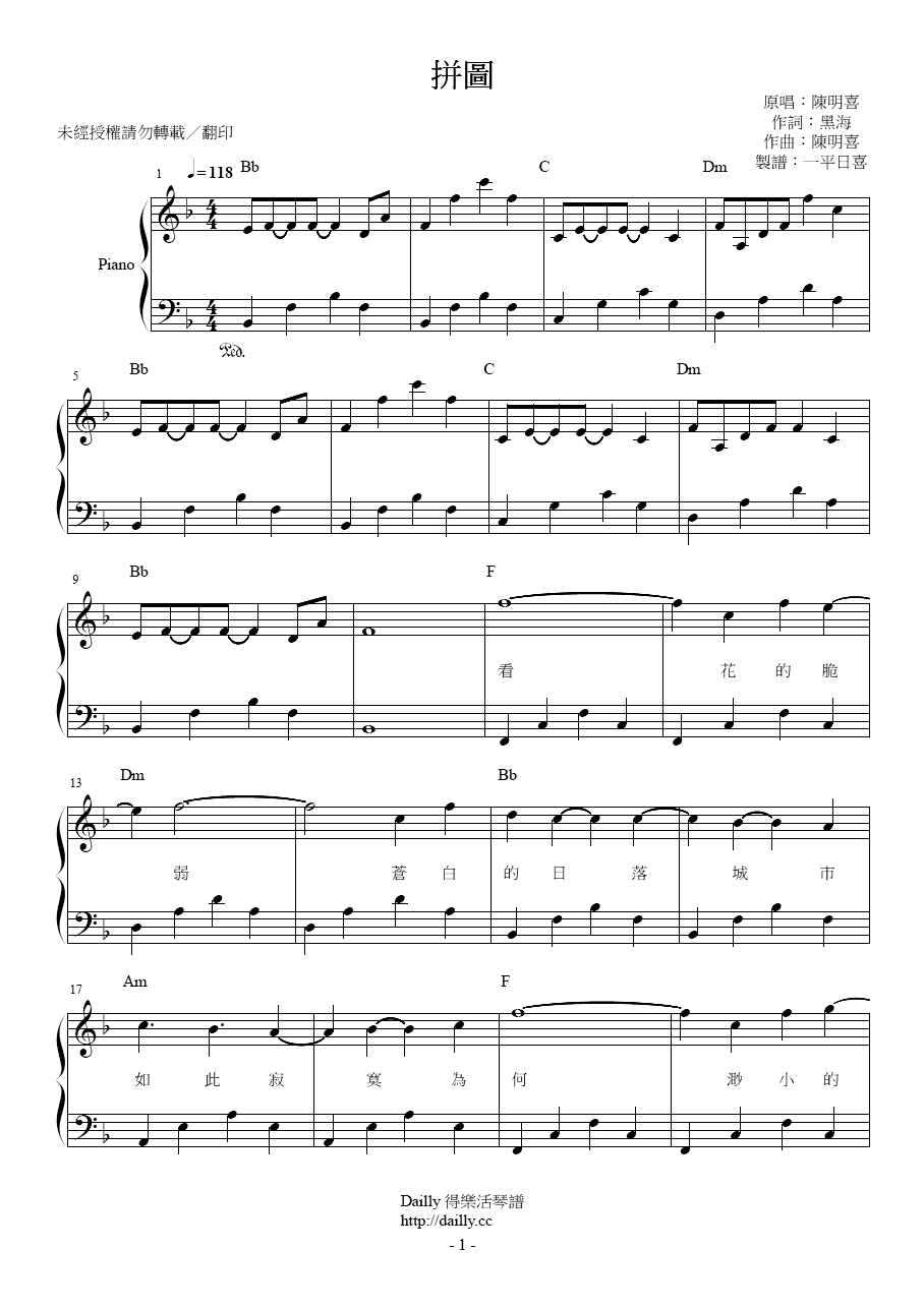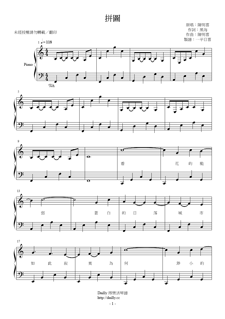 琴譜名稱:陳明憙-拼圖 鋼琴譜
