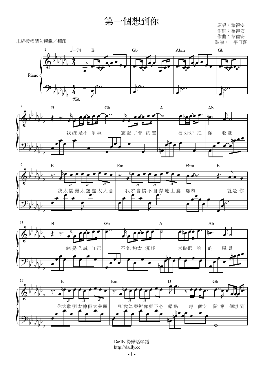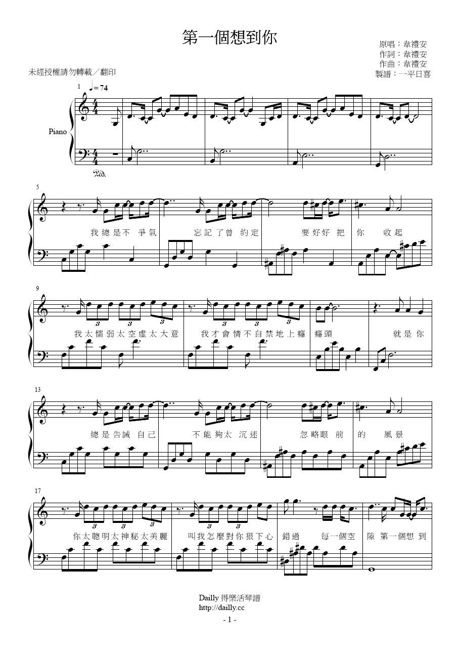 《第一個想到你》鋼琴譜現已可在 Dailly 得樂活下載。