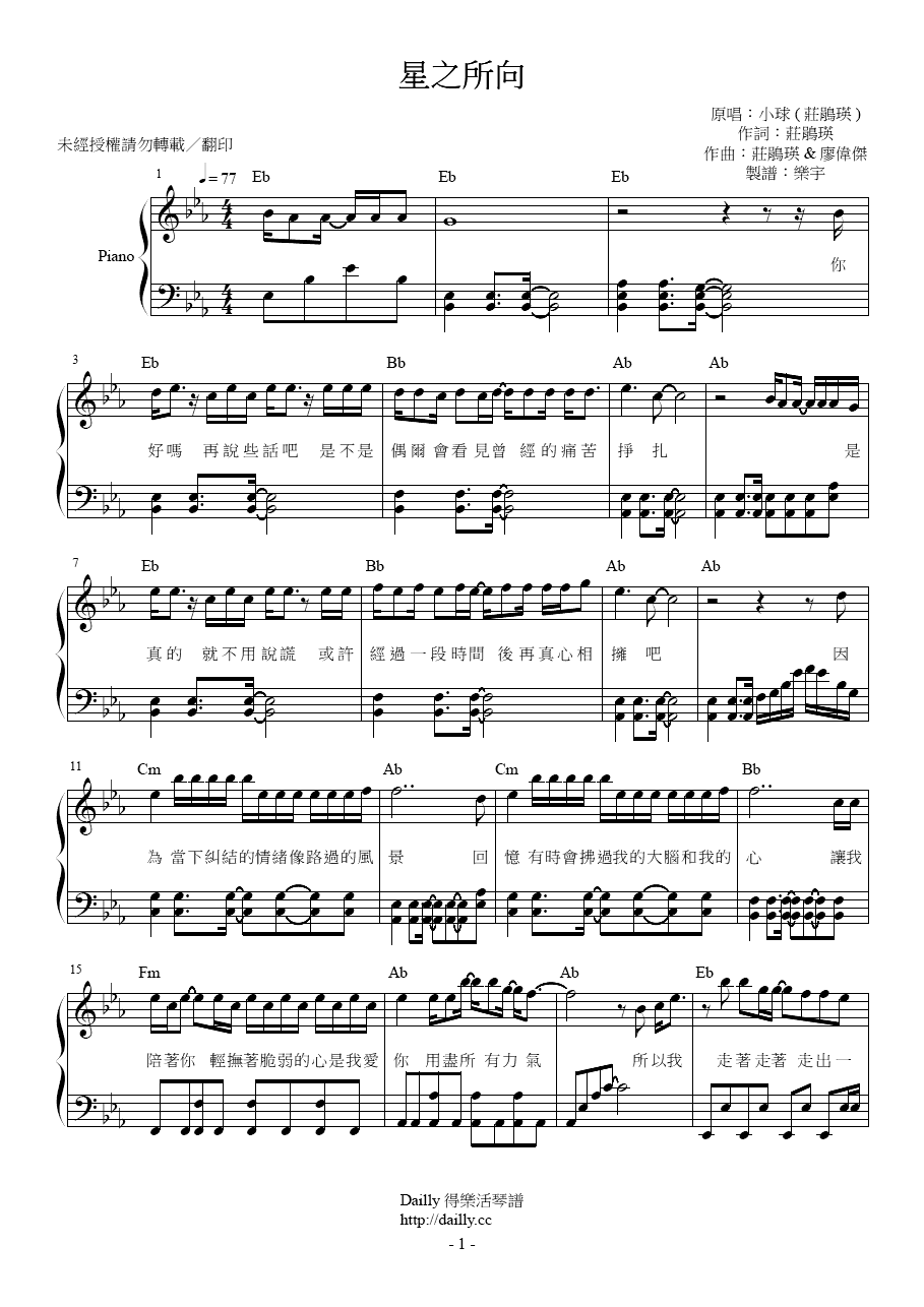 琴譜名稱:小球 ( 莊鵑瑛 )-星之所向 鋼琴譜