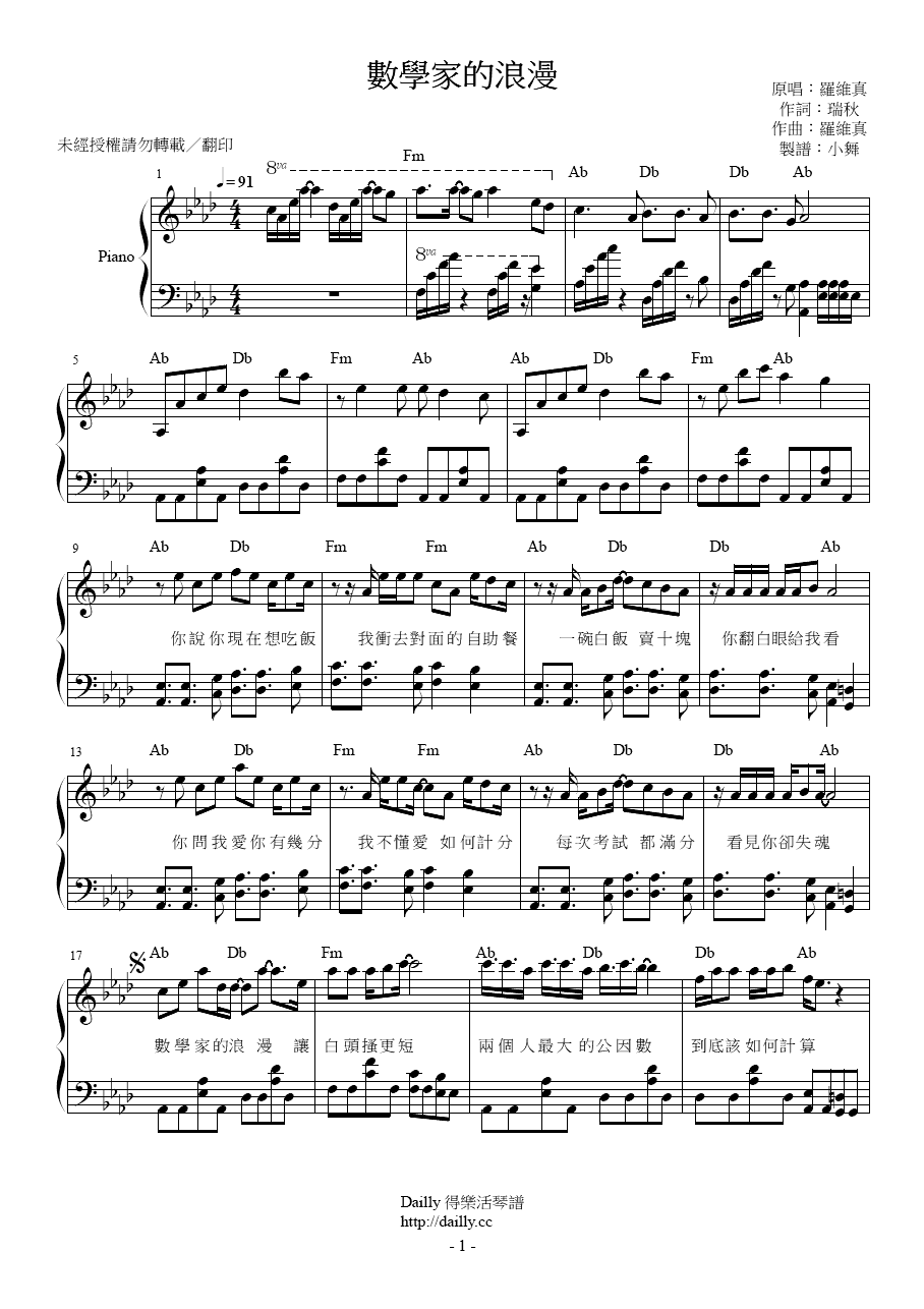 琴譜名稱:羅維真-數學家的浪漫 鋼琴譜
