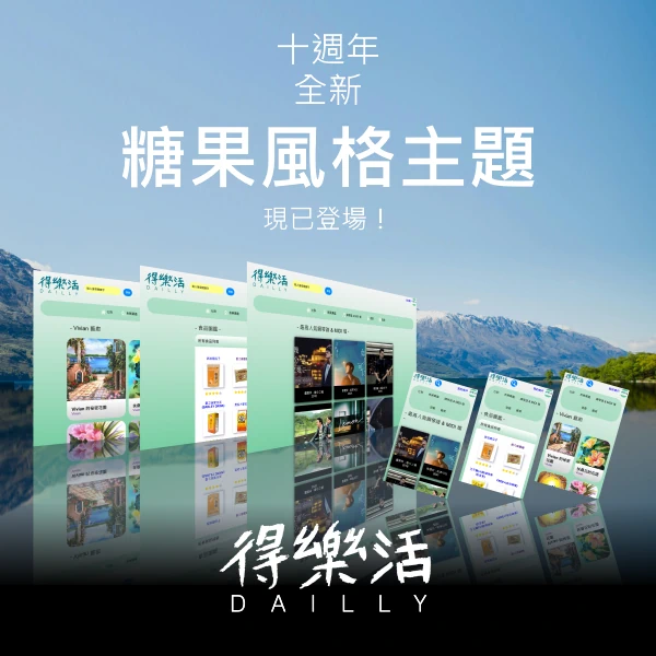 今天是 Dailly 得樂活上線十週年,大家一起來祝 Dailly 得樂活生日快樂!首先由小編先來公布 Dailly 得樂活十週年第一波活動,那就是我們的 Dailly 得樂活主題介面十年來首次進行大變革,換上了全新的「糖果」主題風格!