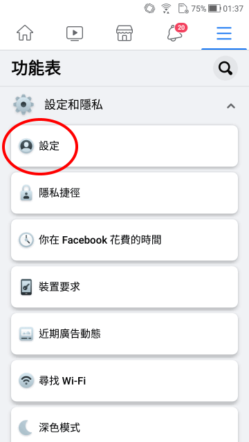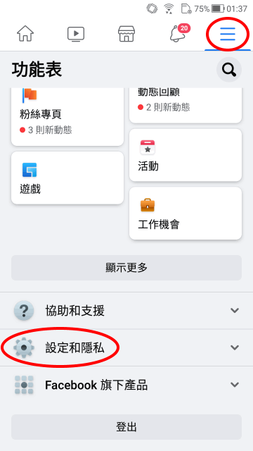 請注意:無論您在什麼情況下,都不要對任何人洩漏您的 Facebook 用戶編號,縱使對方聲稱是 Dailly 得樂活工作人員亦同。1.打開您的 Facebook App,點擊右上角的三條線,再往下找到「設定和隱私」並點擊。