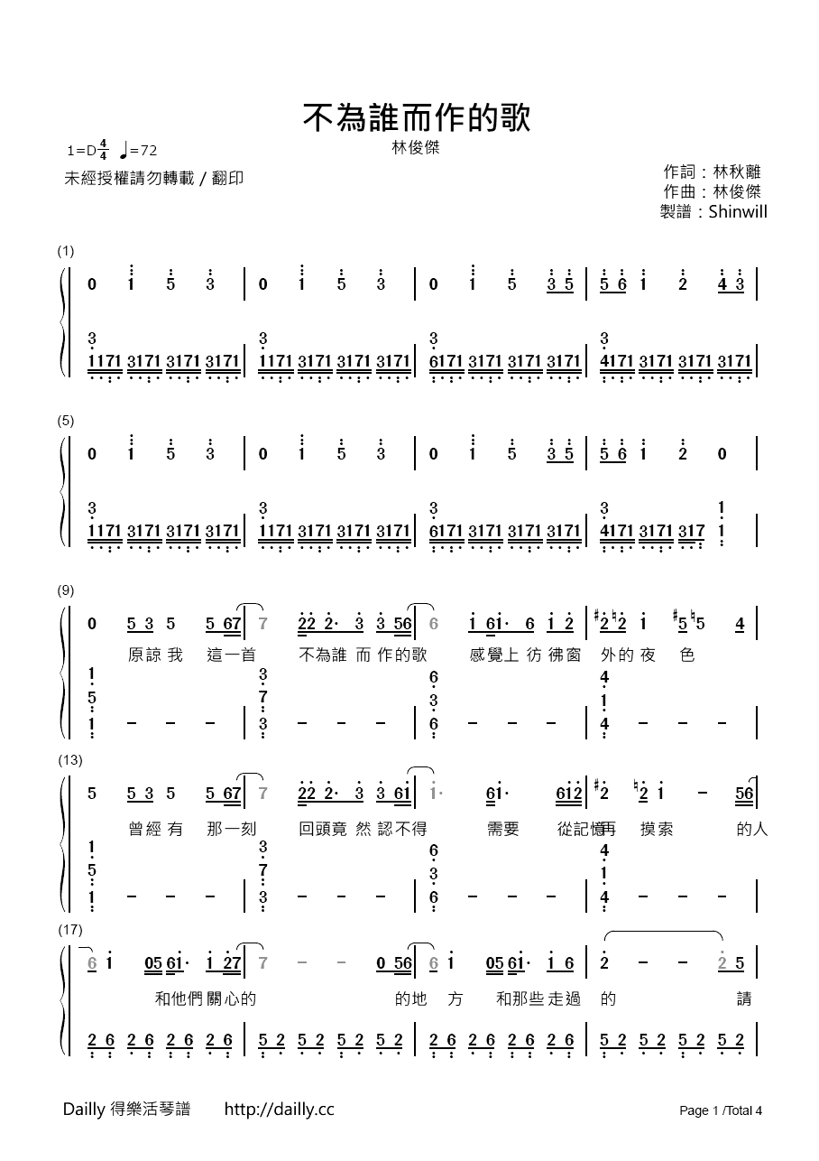 以下是該琴譜的第 1 頁預覽,完整琴譜共 4 頁,