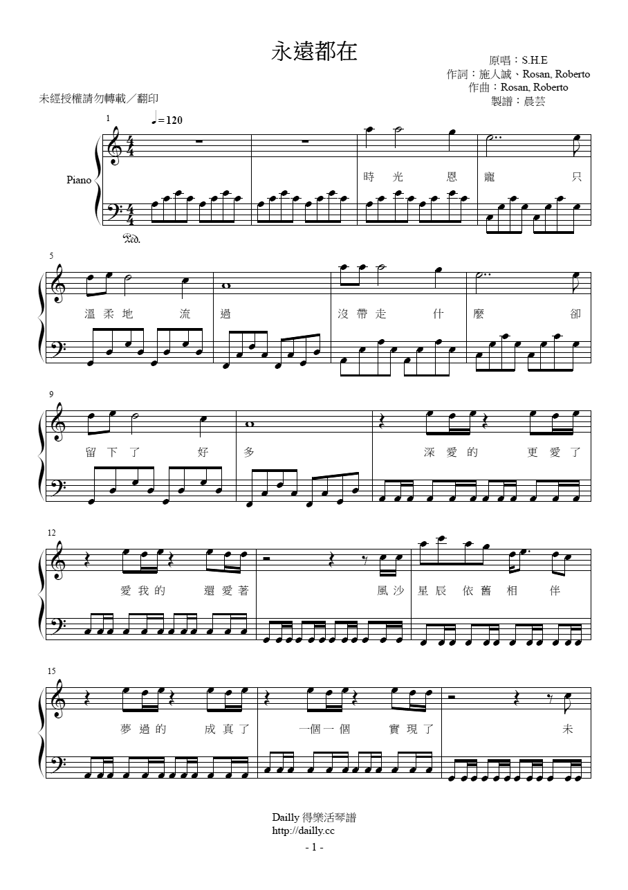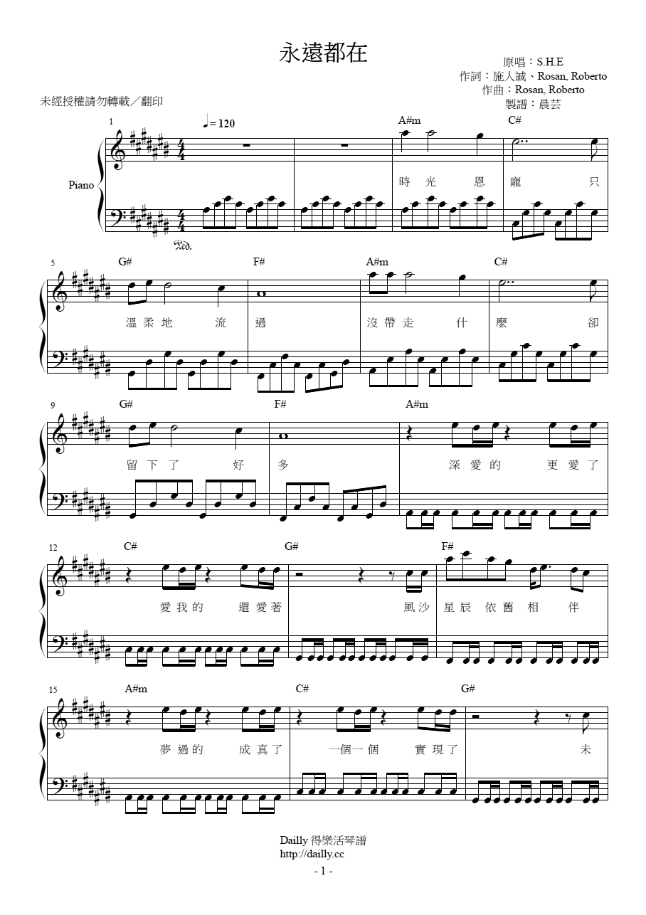 琴譜名稱:S.H.E-永遠都在 鋼琴譜