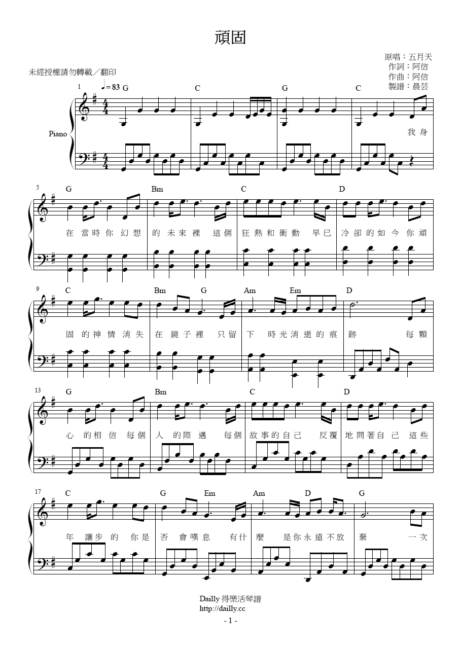 「頑固」鋼琴譜在 Dailly 得樂活全台首發,快來搶先下載!