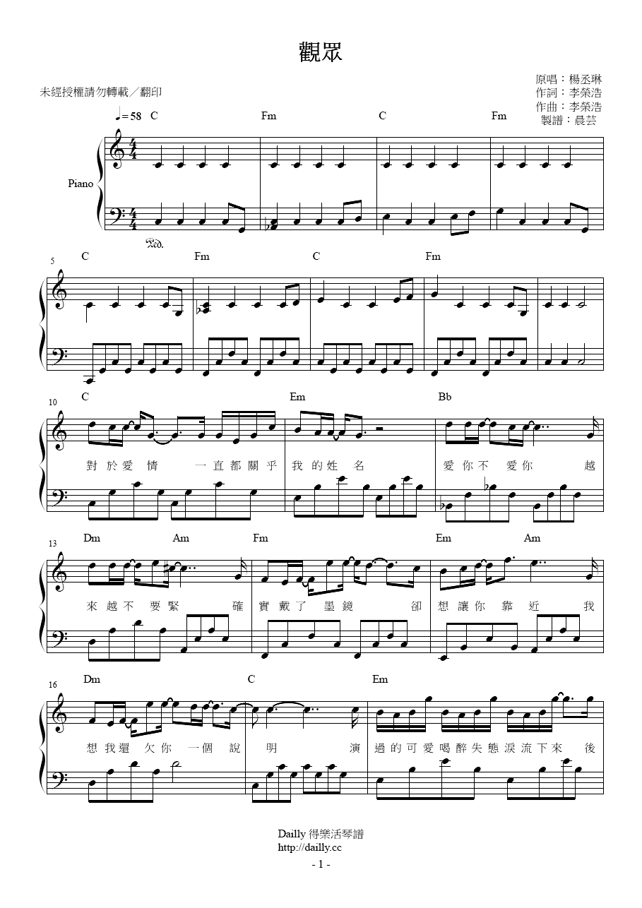 「觀眾」鋼琴譜在 Dailly 得樂活全台首發,快來搶先下載!