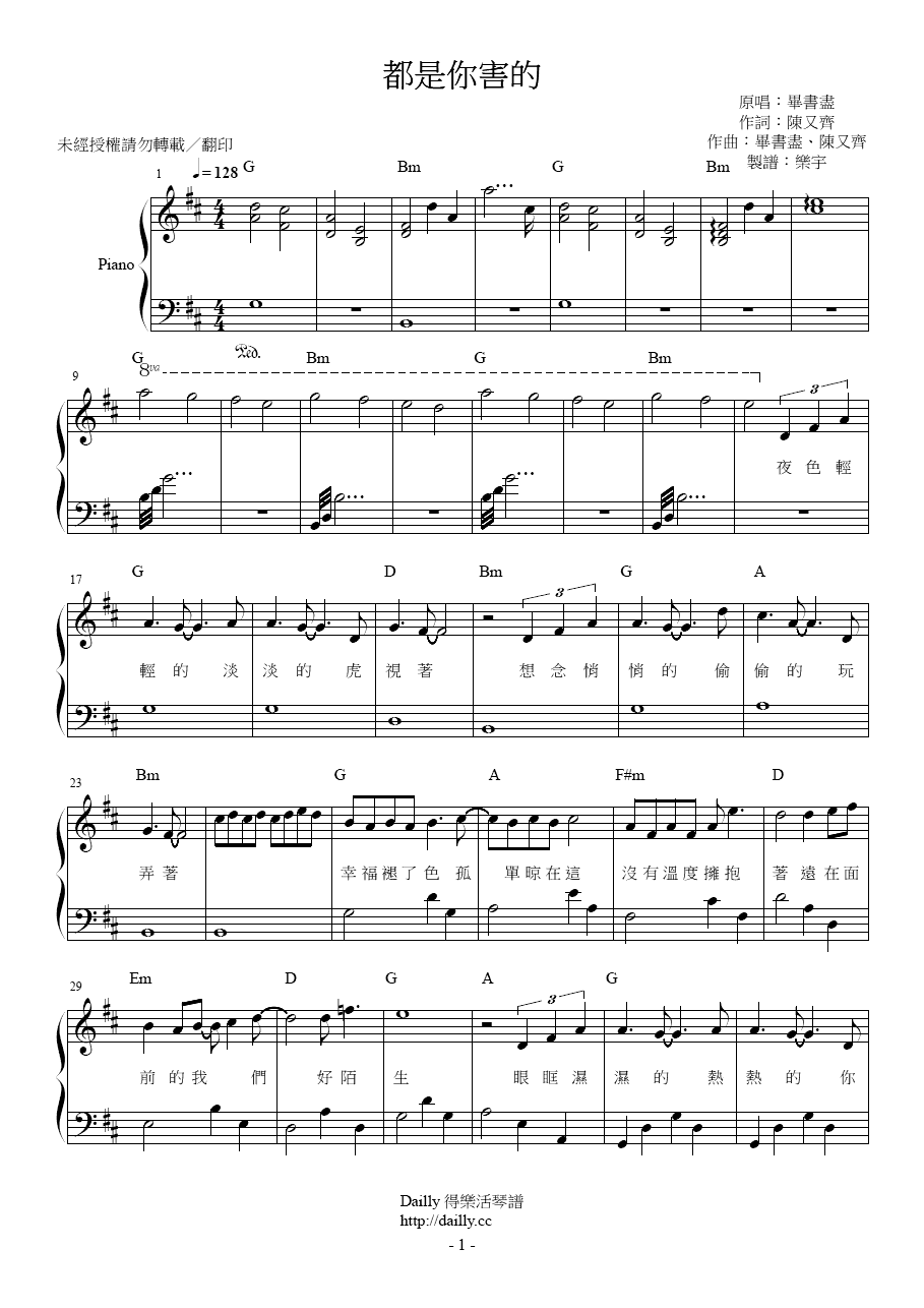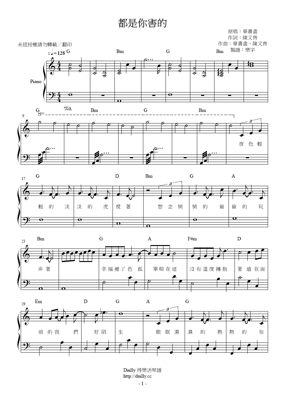 「都是你害的」鋼琴譜現已可在 Dailly 得樂活下載。