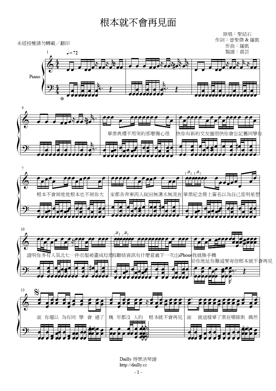 琴譜名稱:聖結石-根本就不會再見面 鋼琴譜