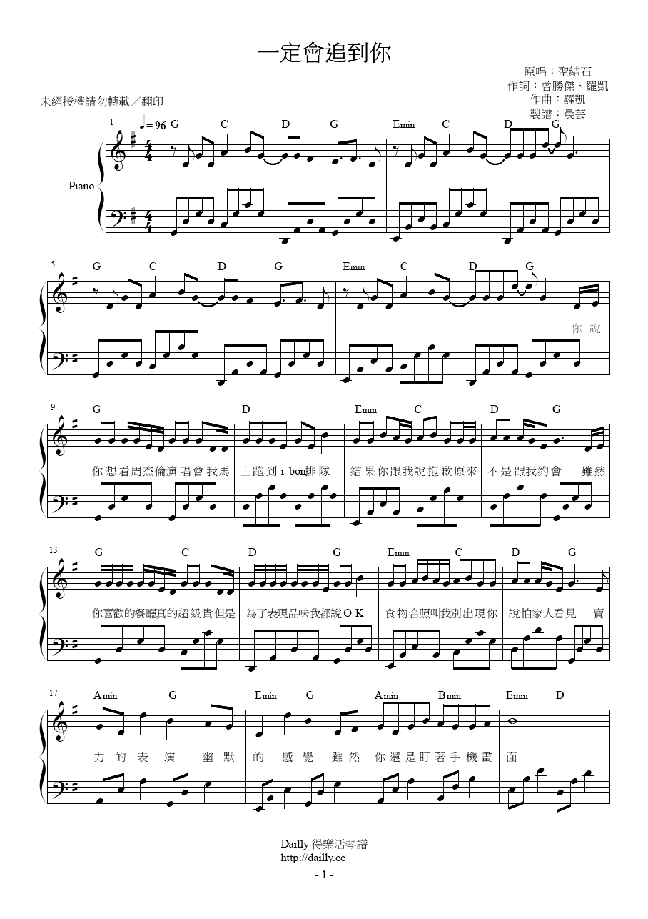 琴譜名稱:聖結石-一定會追到你 鋼琴譜