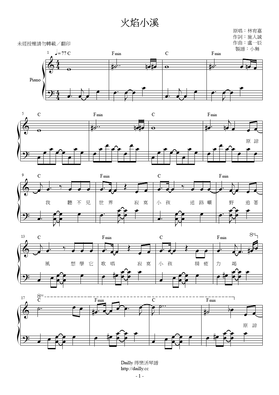 林宥嘉 2018 作品「火焰小溪」鋼琴譜,由小舞老師重新詮釋的版本。
