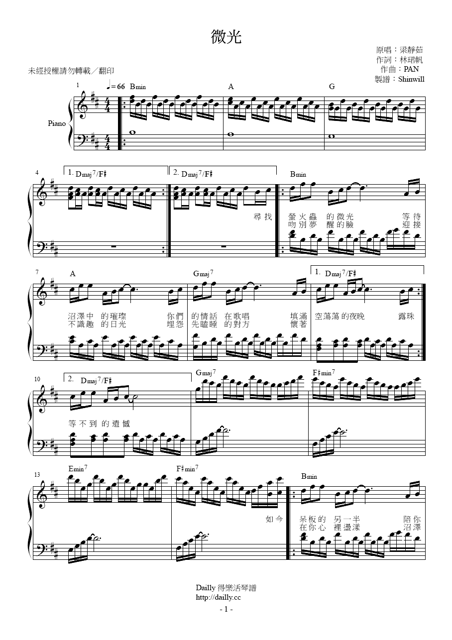 以下是該琴譜的第 1 頁預覽,完整琴譜共 4 頁,