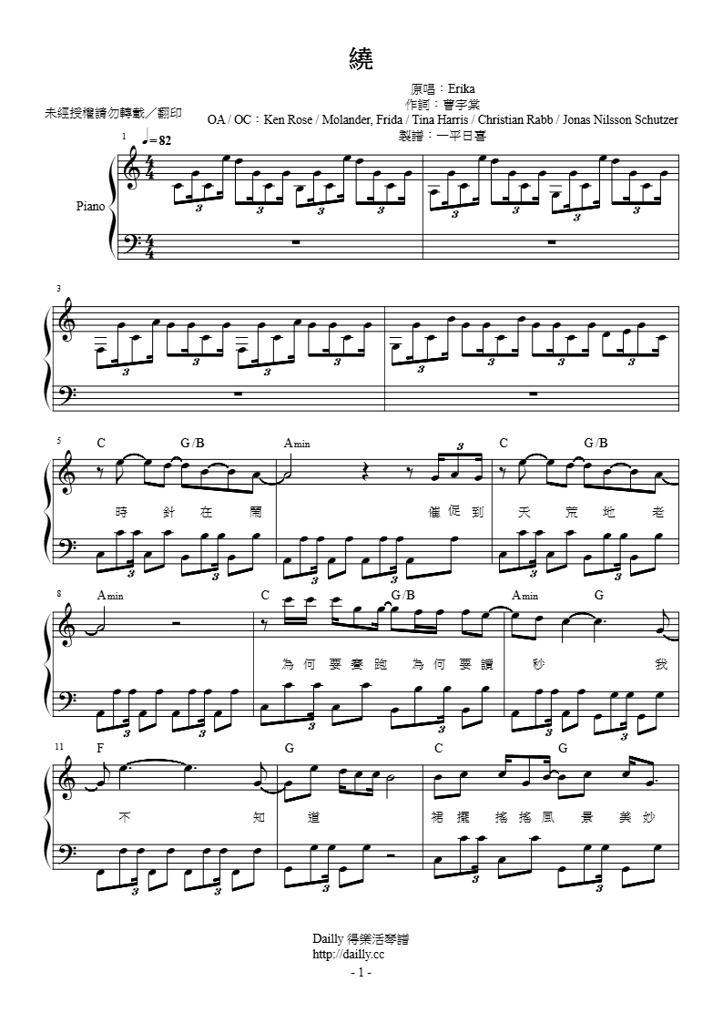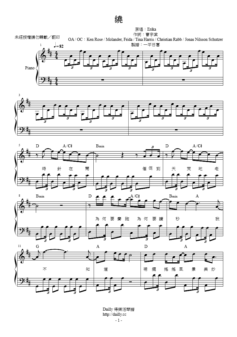 琴譜名稱:Erika-繞 鋼琴譜