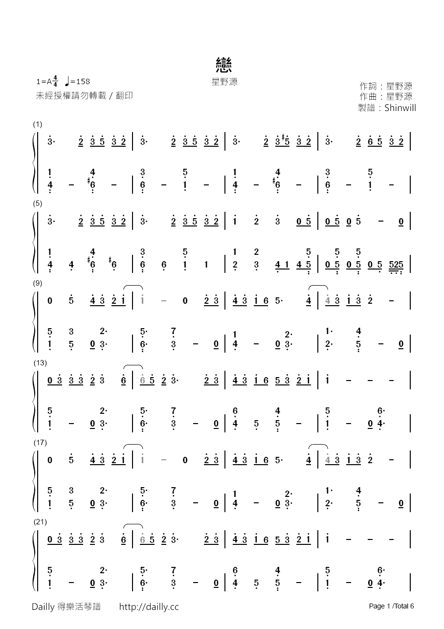 琴譜作者:Shinwill