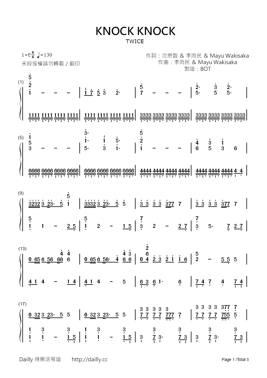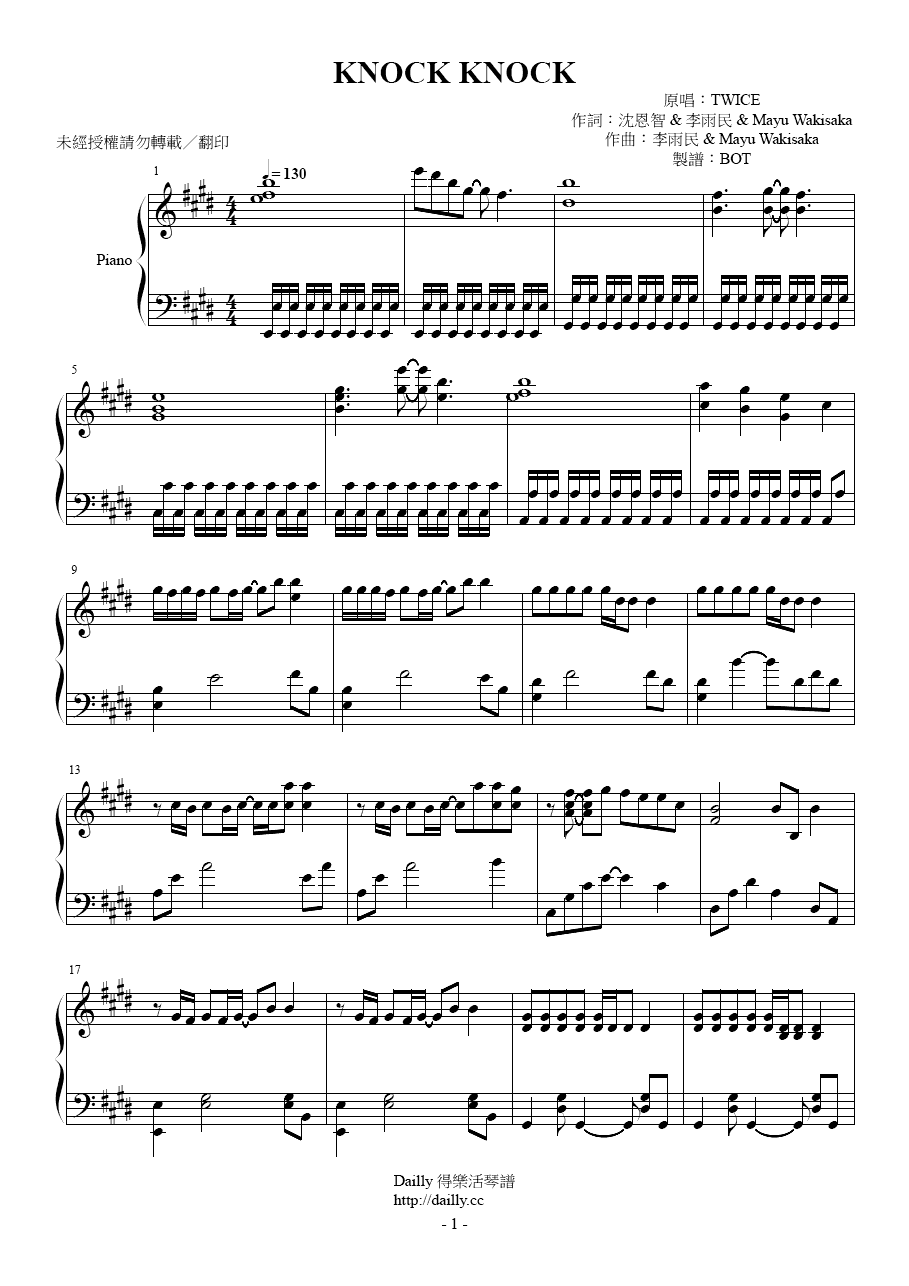 琴譜名稱:TWICE-KNOCK KNOCK 鋼琴譜