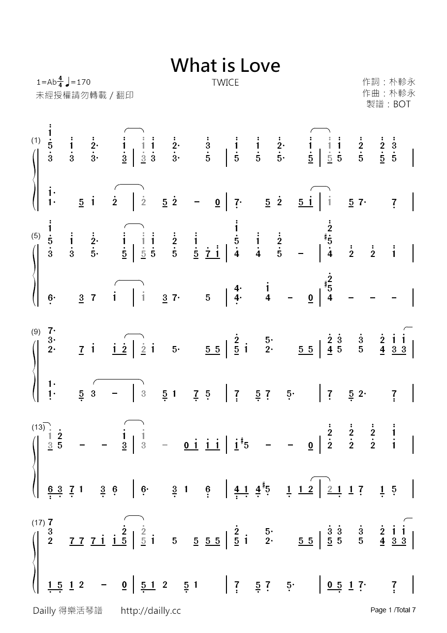 琴譜名稱:TWICE-What is Love? 鋼琴譜