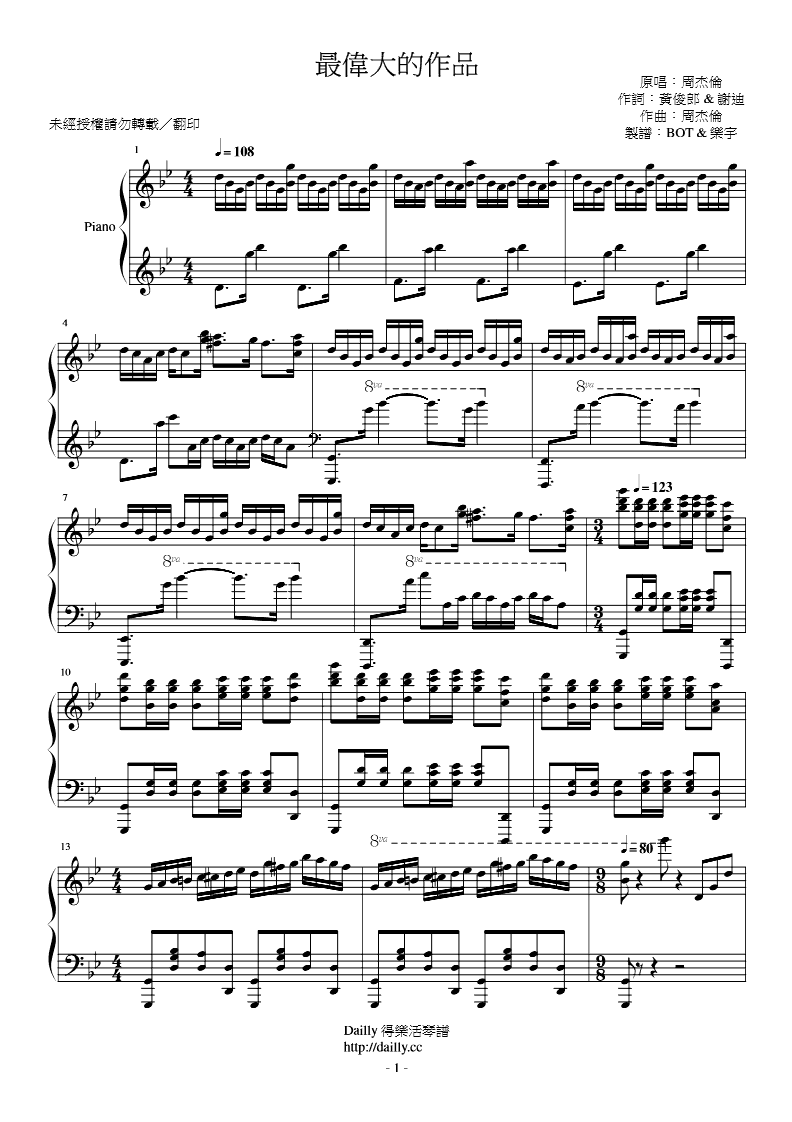 周杰倫 2022 作品《最偉大的作品》鋼琴獨奏譜,收錄於同名專輯《最偉大的作品》。