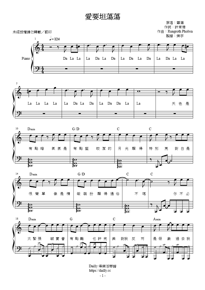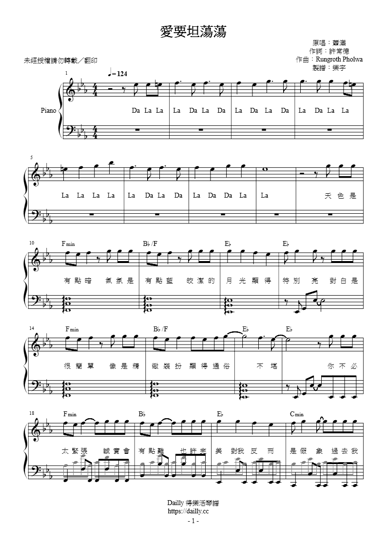 以下是該琴譜的第 1 頁預覽,完整琴譜共 4 頁,